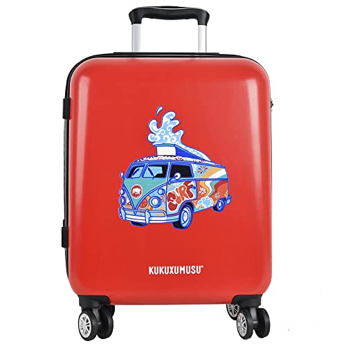 Kukuxumusu, Valise à Roues Rouge Caravane Modèle Furgosurf, Rouge, 56,5x42x21, Valise avec roulettes pivotantes et Face Avant Dure