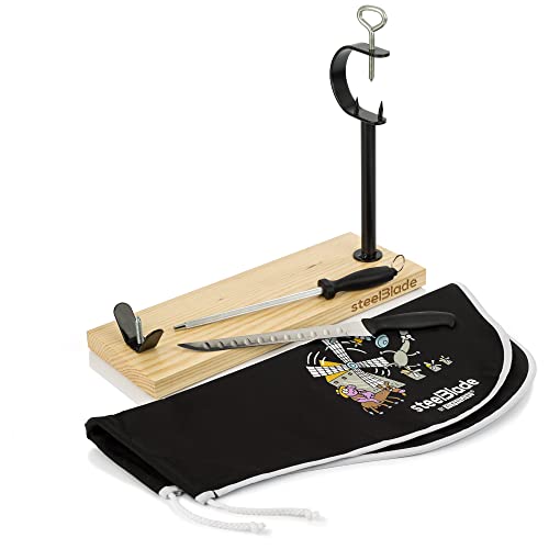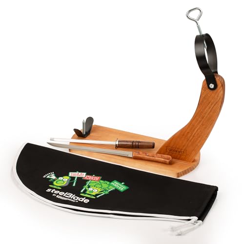 Steelblade Support à Jambon avec Couvre-Jambon Kukuxumusu, Couteau et aiguiseur