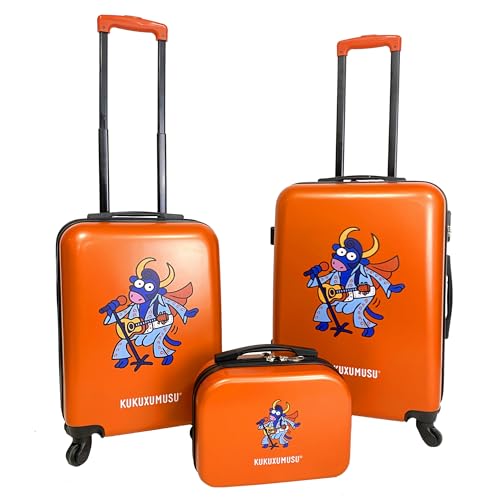Kukuxumusu Valise Cabine de Voyage Rigide, 4 Roues 360 degrés, 56,5 x 42 x 21 cm, ABS et Polycarbonate, avec Cadenas intégré, Orange, 44cm x 25cm x 66cm, Ensemble Valise Moyenne, Cabine et Trousse de