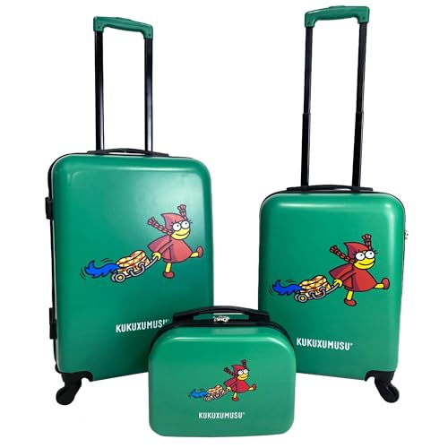 Kukuxumusu Valise Cabine de Voyage Rigide, 4 Roues 360 degrés, 56,5 x 42 x 21 cm, ABS et Polycarbonate, avec Cadenas intégré, Vert, 44 Centimeters x 25 Centimeters x 66 Centimeters, Ensemble Valise