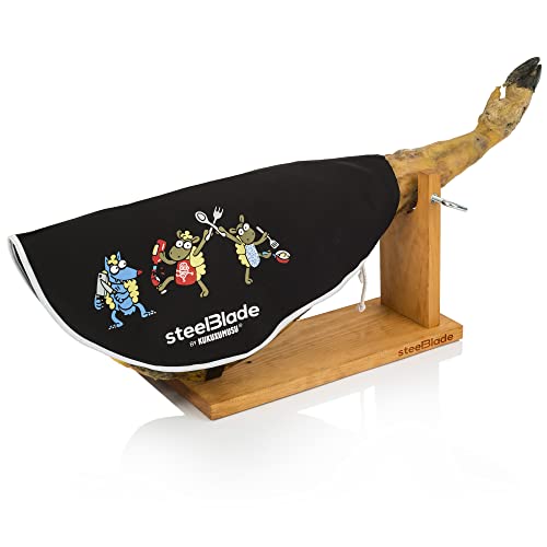 steelBlade - Support à jambon + couvre-jambon Kukuxumusu + couteau à jambon et fusil - Support à jambon fabriqué en Espagne