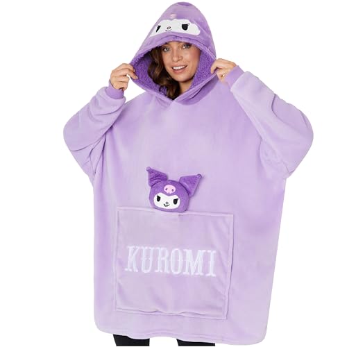 Hello Kitty Sanrio Kuromi Couverture à Capuche Femme Ado, Couverture Polaire Oversize Peluche Intégrée, Cadeau Kawaii (Violet Kuromi)