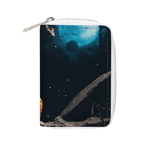 RTFGHJS Porte-cartes en cuir synthétique fin et durable pour homme et femme Motif léopard africain, L'astronaute s'est écrasé sur la lune, 16x11.5cm