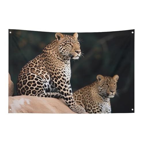 Petit drapeau de maison pour l'extérieur Léopard africain sur rocher Drapeau saisonnier pour Noël, Halloween, Pâques, Saint-Valentin