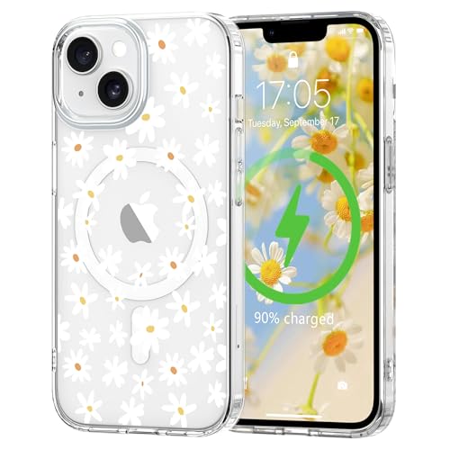 L-FADNUT Coque Magnétique pour iPhone 14/13 [Coque Compatible avec MagSafe] Transparente Silicone Motif de Fleur Fine Antichoc Étui de Protection pour iPhone 14/13 Blanc