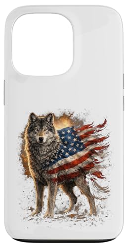 Loup majestueux du Jour de l'indépendance avec Drapeau américain Coque pour iPhone 13 Pro