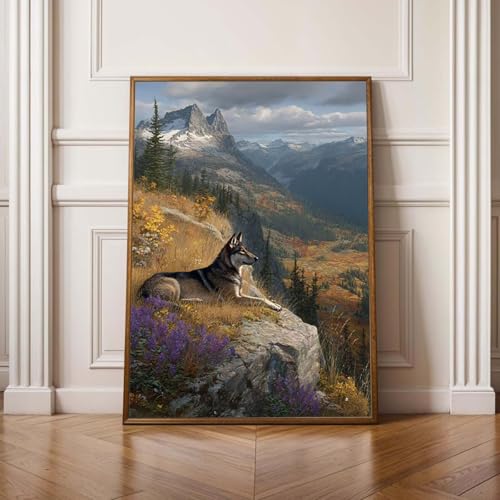 5D Peinture Diamant Painting Kit, Diamond Painting Complet pour Adulte, DIY Loup Montagne Art du Diamant Kits, Diamond Strass Point de Croix Peinture Débutants Intérieure Maison 40x50 cm PjY10688 L-6
