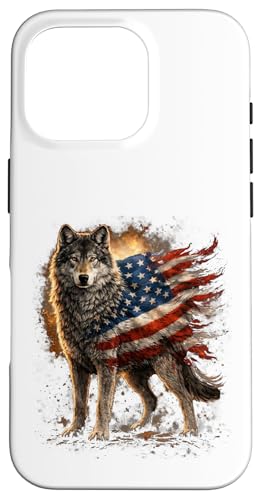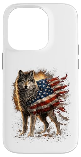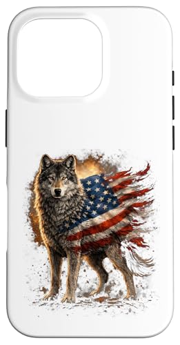 Loup majestueux du Jour de l'indépendance avec Drapeau américain Coque pour iPhone 16 Pro