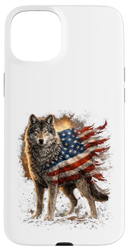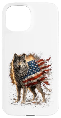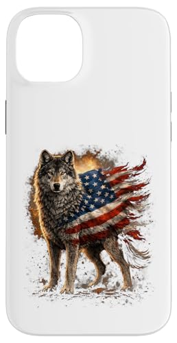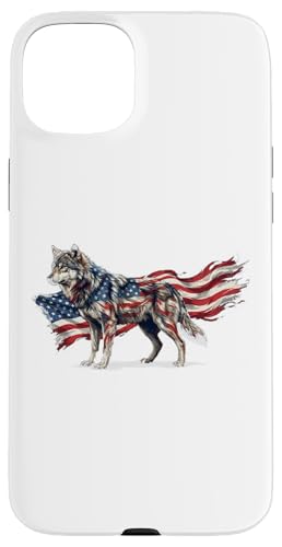 Loup majestueux du Jour de l'indépendance avec Drapeau américain Coque pour iPhone 15 Plus