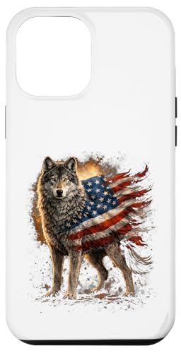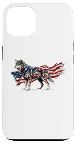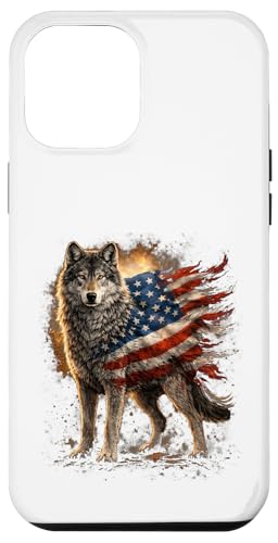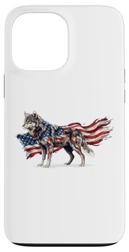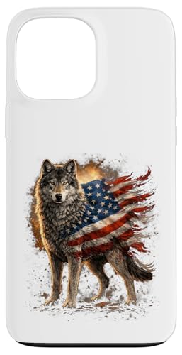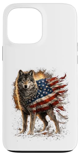 Loup majestueux du Jour de l'indépendance avec Drapeau américain Coque pour iPhone 13 Pro Max