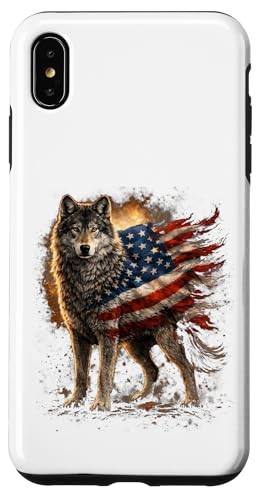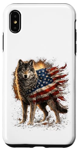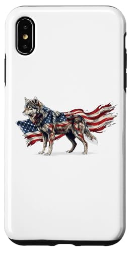 Loup majestueux du Jour de l'indépendance avec Drapeau américain Coque pour iPhone XS Max