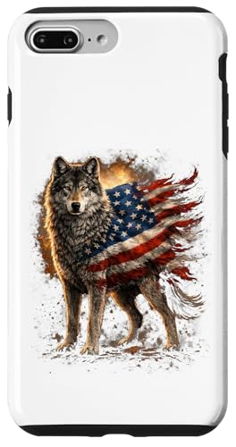 Loup majestueux du Jour de l'indépendance avec Drapeau américain Coque pour iPhone 7 Plus/8 Plus