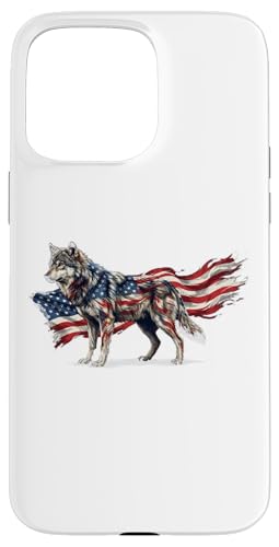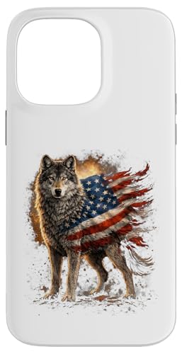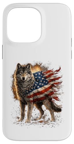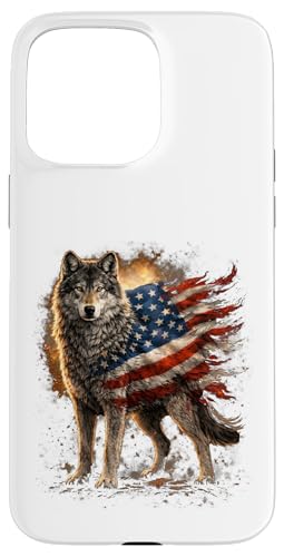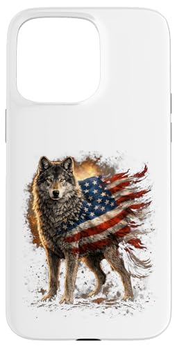 Loup majestueux du Jour de l'indépendance avec Drapeau américain Coque pour iPhone 15 Pro Max