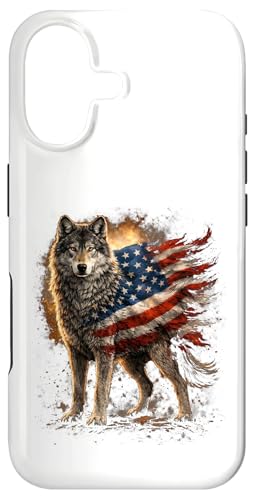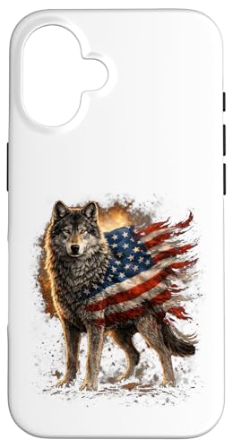 Loup majestueux du Jour de l'indépendance avec Drapeau américain Coque pour iPhone 16