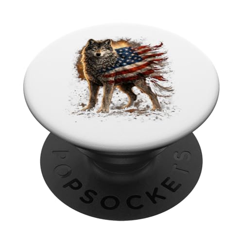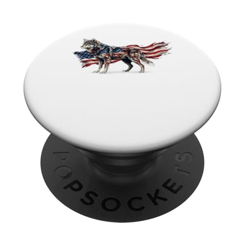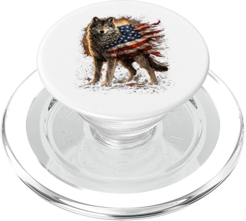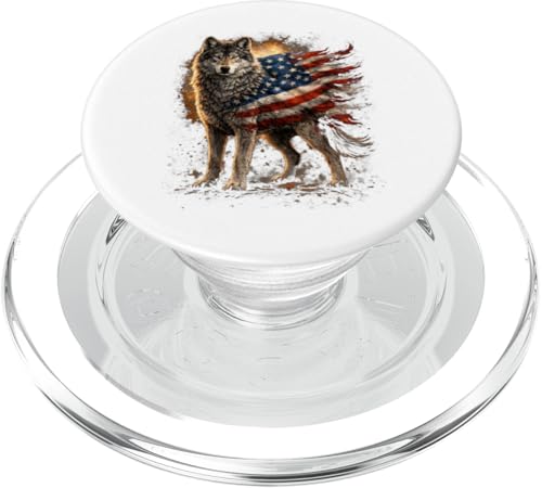 Loup majestueux du Jour de l'indépendance avec Drapeau américain PopSockets PopGrip pour MagSafe