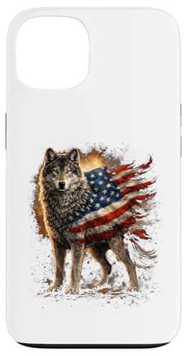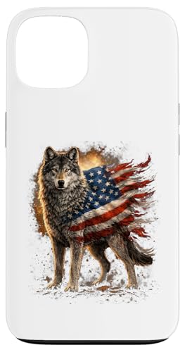 Loup majestueux du Jour de l'indépendance avec Drapeau américain Coque pour iPhone 13