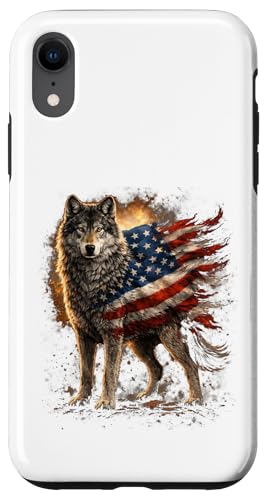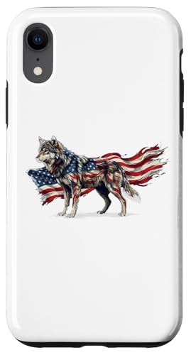 Loup majestueux du Jour de l'indépendance avec Drapeau américain Coque pour iPhone XR