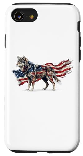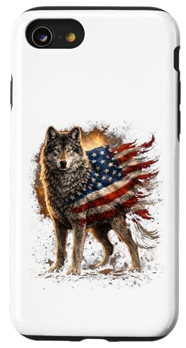 Loup majestueux du Jour de l'indépendance avec Drapeau américain Coque pour iPhone SE (2020) / 7/8