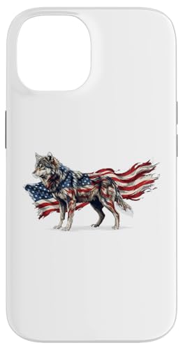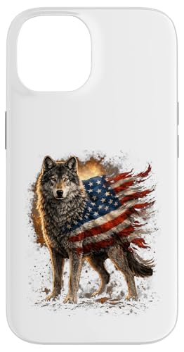Loup majestueux du Jour de l'indépendance avec Drapeau américain Coque pour iPhone 14 Plus