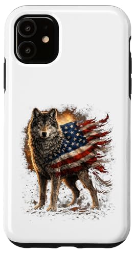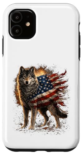 Loup majestueux du Jour de l'indépendance avec Drapeau américain Coque pour iPhone 11