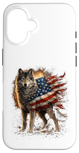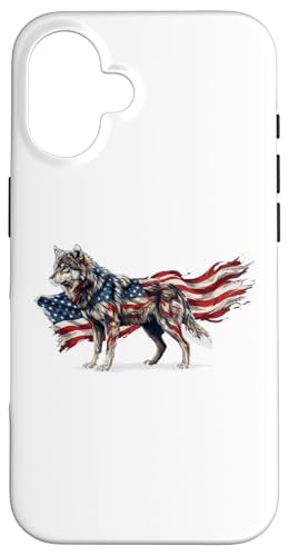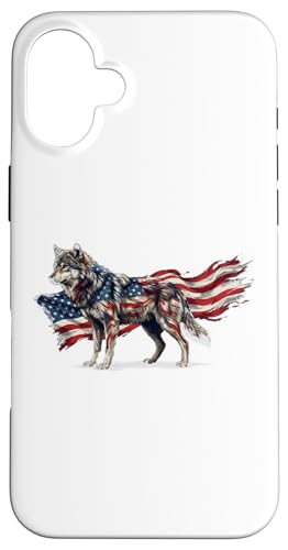 Loup majestueux du Jour de l'indépendance avec Drapeau américain Coque pour iPhone 16 Plus