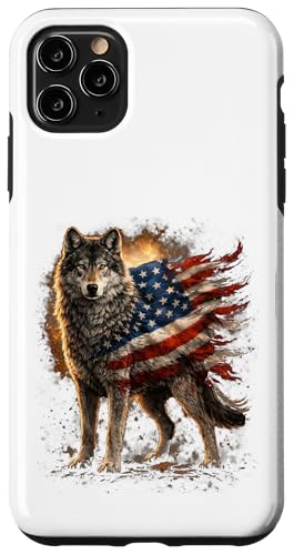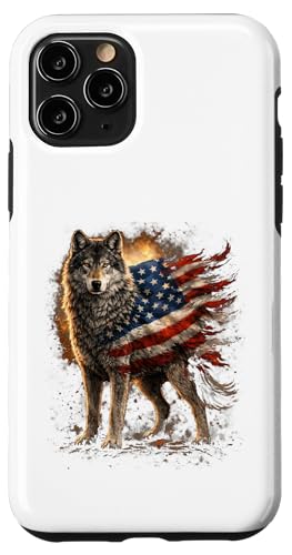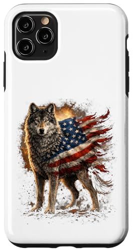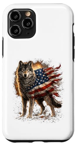 Loup majestueux du Jour de l'indépendance avec Drapeau américain Coque pour iPhone 11 Pro