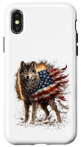 Loup majestueux du Jour de l'indépendance avec Drapeau américain Coque pour iPhone X/XS