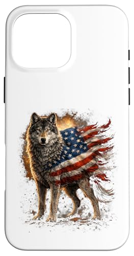 Loup majestueux du Jour de l'indépendance avec Drapeau américain Coque pour iPhone 16 Pro Max