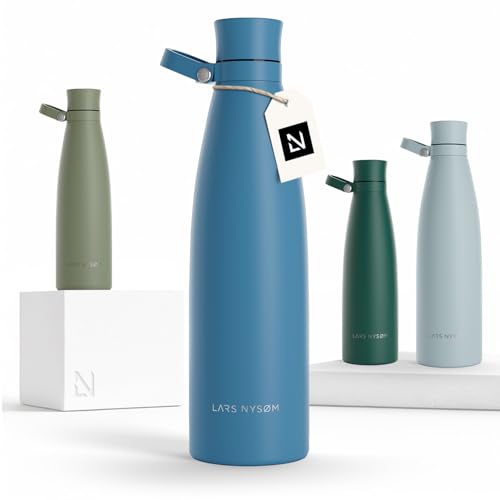 LARS NYSØM Gourde INOX 750ml | 0.75L Bouteille d’eau isolée | Gourde étanche pour Le Sport, la Bicyclette, Les Enfants (Stone Blue, 750ml)