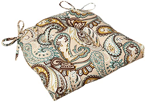 Pillow Perfect Lot de 2 Coussins de Chaise touffetés à Motif Cachemire pour intérieur/extérieur, résistants aux intempéries et à la décoloration, 48,3 x 48,3 cm, Bleu/Vert