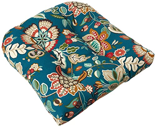 Pillow Perfect Lot de 2 Coussins de Chaise touffetés en Osier pour intérieur/extérieur, résistants aux intempéries et à la décoloration, 48,3 x 48,3 cm, Bleu/Beige Telfair Peacock