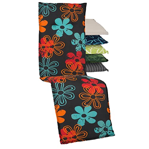 Beo Barcelone Coussin de chaise de détente résistant aux UV | Fabriqué en UE selon la norme Öko-Tex Standard | Coussin de chaise de détente lavable avec bande de maintien en caoutchouc | Coussin de chaise longue respirant avec fleurs rouge-bleu