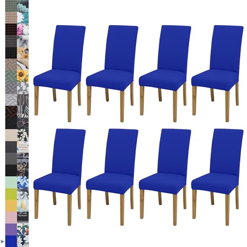 SUKAIKEQA élastique, Housse de Chaise Haute, Housse de Chaise de Bureau (Lot de 4/6/8 pièces avec Dossier) pour Le Salon, la Cuisine, la fête et l'hôtel. (8, Bleu Saphir)