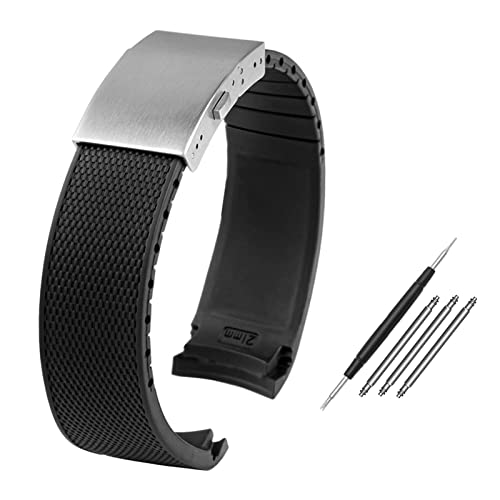 BIK Bande De Montre En Silicone En Caoutchouc 19mm 20mm 21mm 22mm La Conquête Des Hydroconques Pour Longins VHP Sangle De Montre De Sport Imperméable(Black,21mm)