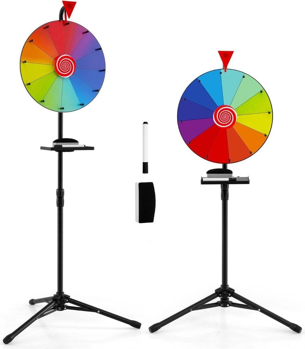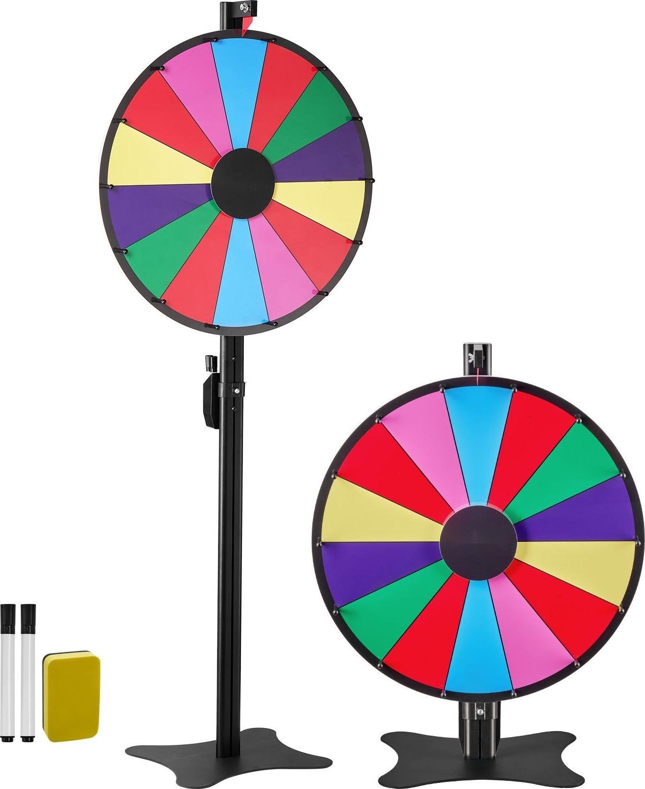 VEVOR Roue de la fortune 91 cm avec 18 compartiments, roue de roulette avec stylo effaçable à sec & 2 marqueurs, à poser sur une table ou sur le sol pour jouer à des jeux de hasard pour des fêtes, des bars, etc.