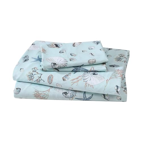 Smuge Parure de lit 3 pièces matelassée sur Le thème de la Plage avec Couvre-oreillers, Image de Paysage Marin Vif avec Coquillages colorés, conque, étoile de mer Corail, Fine, légère et Respirante