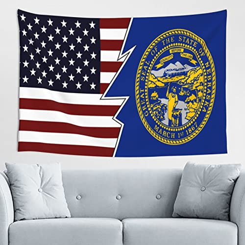 FJQWKLF Style déchiré américain et drapeau du Nebraska tapisserie 60 x 40 pouces décor de fête chambre salon dortoir décor à la maison tapisserie