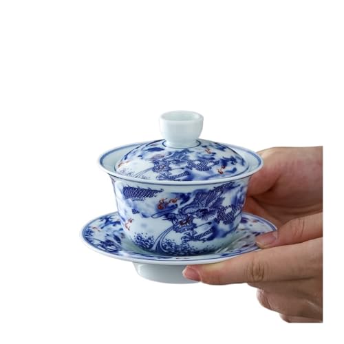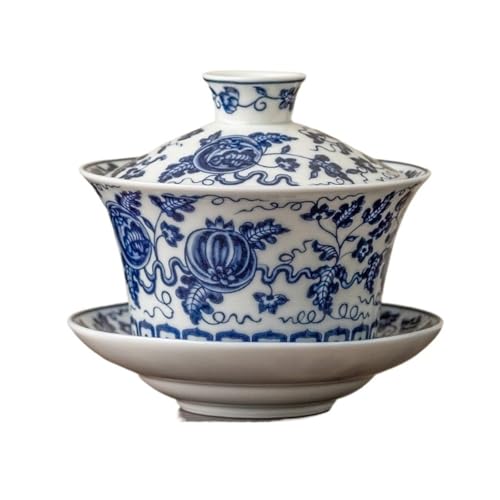 Gaiwan – Céramique Bleue Et Blanche De 250ml, Grande Taille Créative, Anti-brûlure, Soupière for La Préparation du Thé, Bol, Services Artisanaux L'éLéGance Est Intemporelle(C About-250ml)
