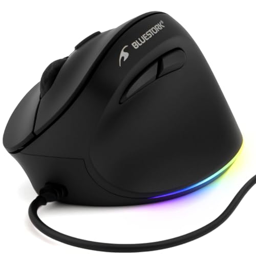 Bluestork - Souris Ergonomique Filaire Verticale, USB-A, 1000 à 3600 DPI, 6 Boutons, LED RGB – Idéale pour Droitier – Prévention du Syndrome de la Souris et des Tendinites – Compatible PC & Mac