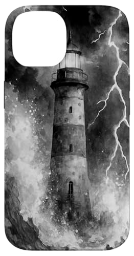 Phare dans la tempête avec Flash Paysage Marin Dramatique Coque pour iPhone 14
