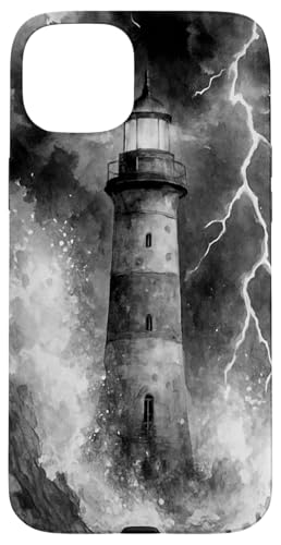 Phare dans la tempête avec Flash Paysage Marin Dramatique Coque pour iPhone 15 Plus