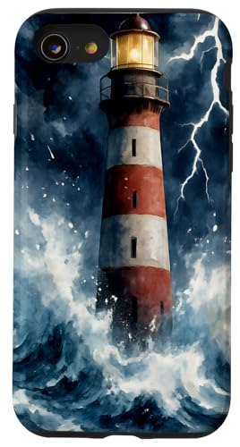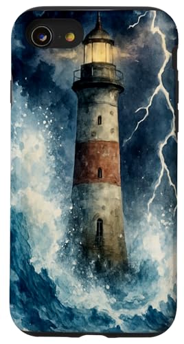 Phare dans la tempête avec Flash Paysage Marin Dramatique Coque pour iPhone SE (2020) / 7/8