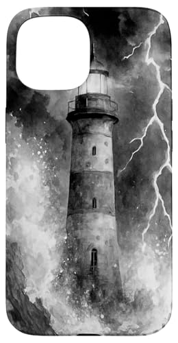 Phare dans la tempête avec Flash Paysage Marin Dramatique Coque pour iPhone 15
