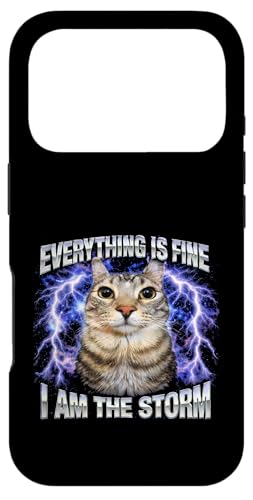 Cat Meme Tout va Bien Je suis la tempête Coque pour iPhone 17 Pro
