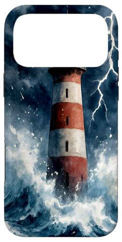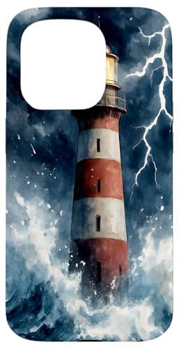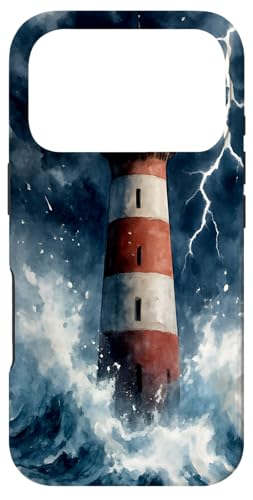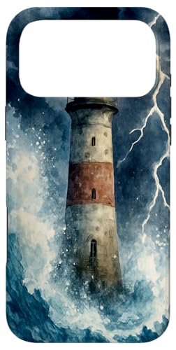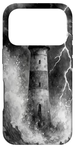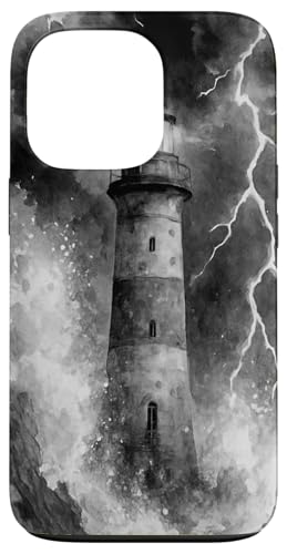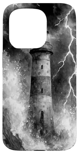 Phare dans la tempête avec Flash Paysage Marin Dramatique Coque pour iPhone 17 Pro