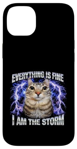 Cat Meme Tout va Bien Je suis la tempête Coque pour iPhone 14 Plus