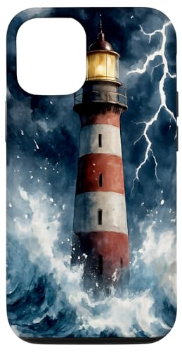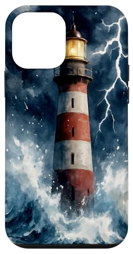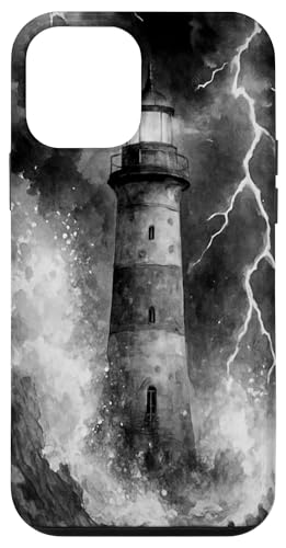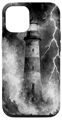 Phare dans la tempête avec Flash Paysage Marin Dramatique Coque pour iPhone 12/12 Pro
