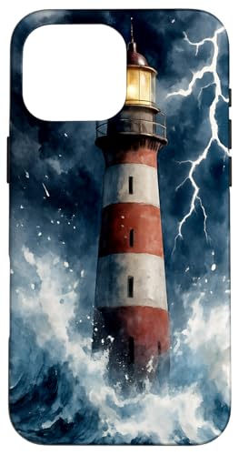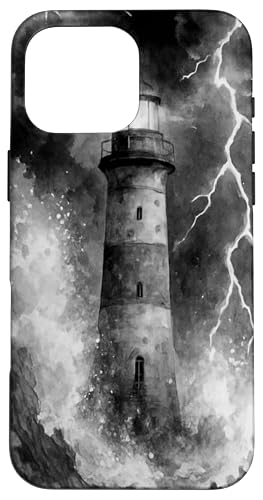 Phare dans la tempête avec Flash Paysage Marin Dramatique Coque pour iPhone 16 Pro Max