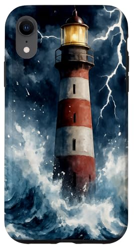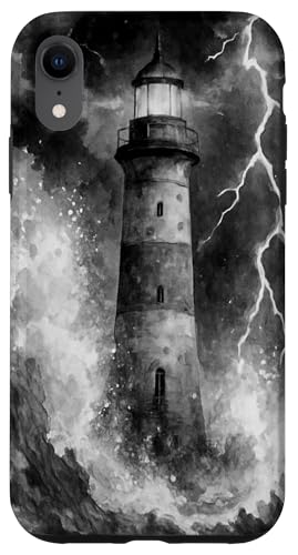 Phare dans la tempête avec Flash Paysage Marin Dramatique Coque pour iPhone XR