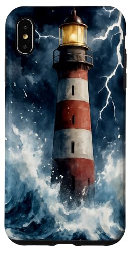 Phare dans la tempête avec Flash Paysage Marin Dramatique Coque pour iPhone XS Max